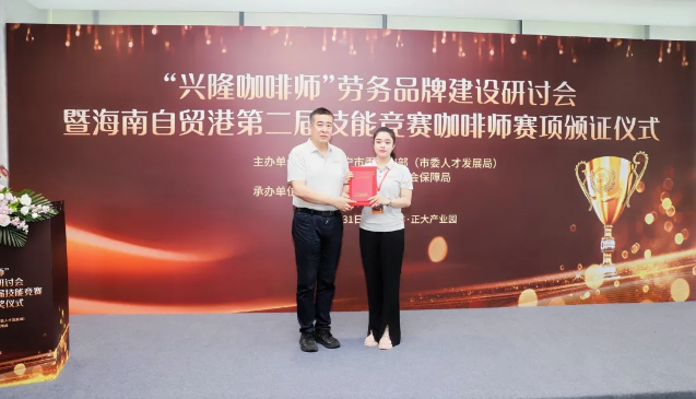 5月31日,“兴隆咖啡师”劳务品牌建设研讨会暨海南自贸港第二届技能大赛咖啡师赛项颁奖颁证仪式在万宁兴隆咖啡·正大产业园举行。