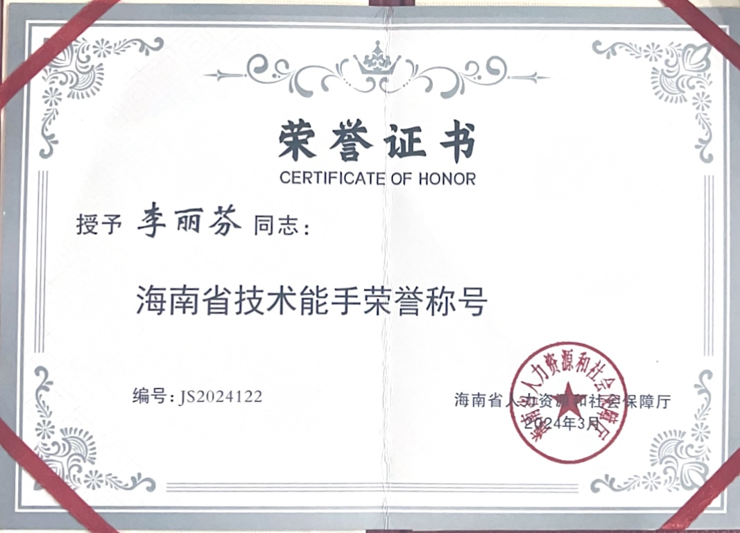 • 次荣获海南省职业技能竞赛裁判员、海南省职业技能等级认证考评员等荣誉