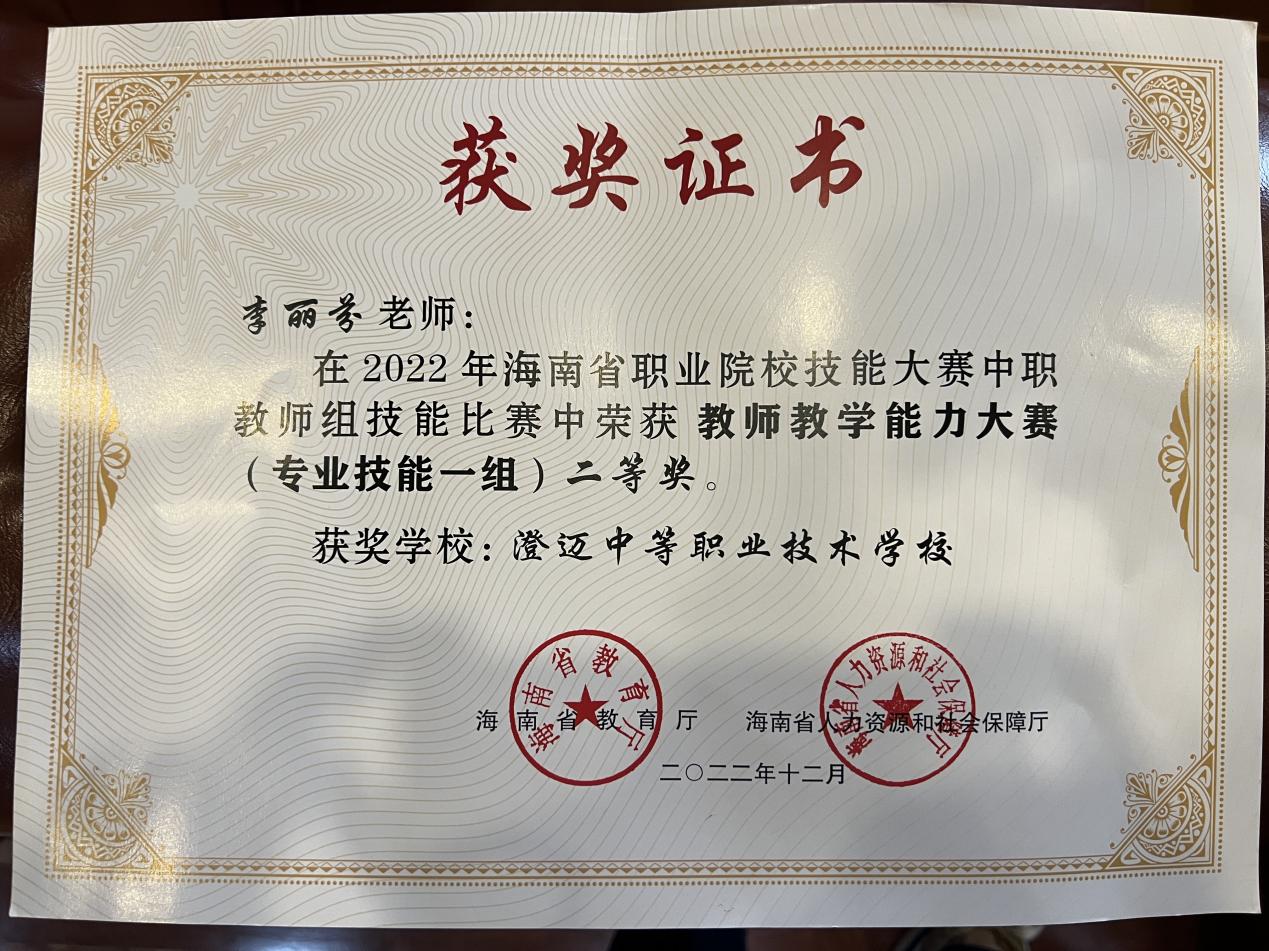 • 2021年,参加海南省教师教学技能比赛获得二等奖