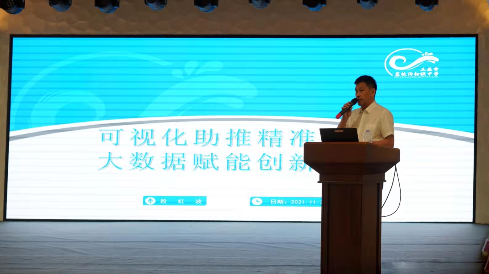三亚教培院“银发精英” 特级教师、正高级教师,全国劳动模范、教育部基础教育专业委员会指导专家丁勇慧校长参加报告会并作讲话。