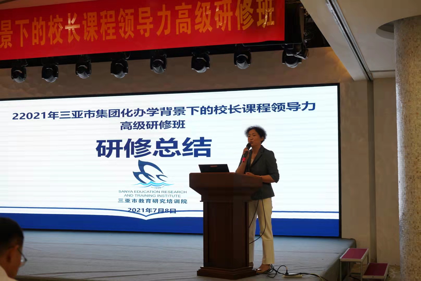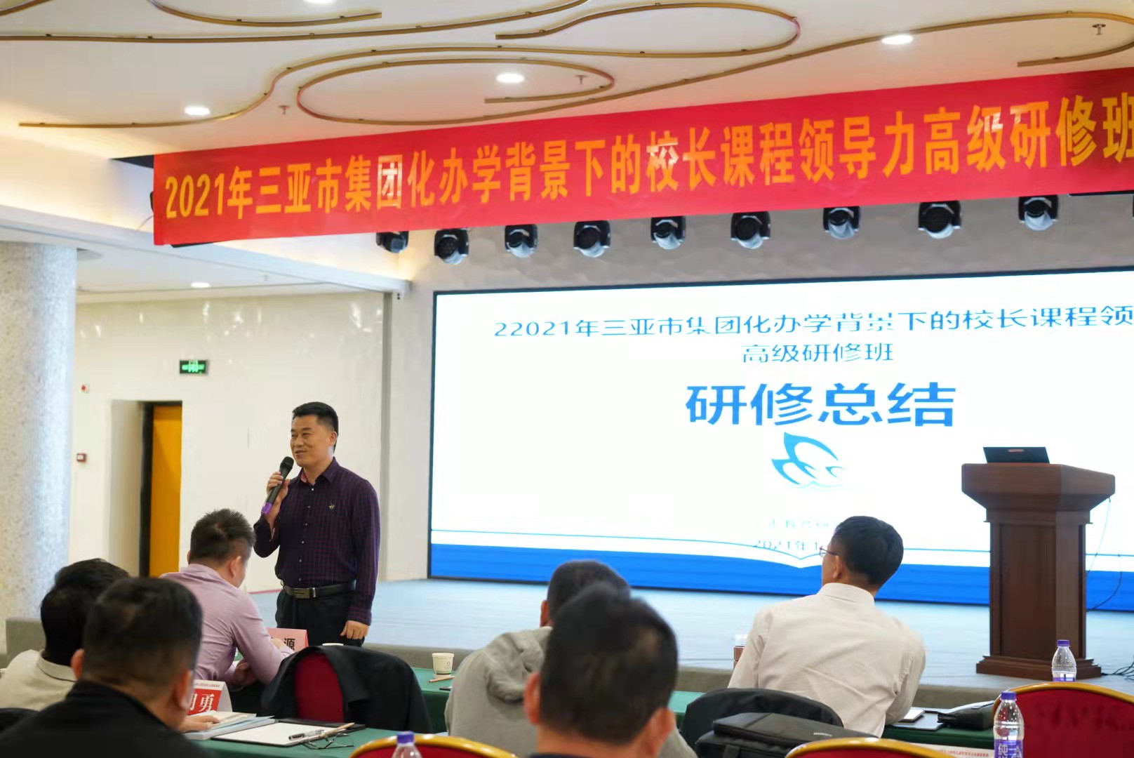 活动的最后,三亚市教培院副主任闫学忠介绍了本次活动的设计理念,向诸位积极参与课程领导力提升活动的校长表达感谢,并宣布了三亚市“集团化办学背景下的校长课程领导力”高级研修班的圆满落幕。